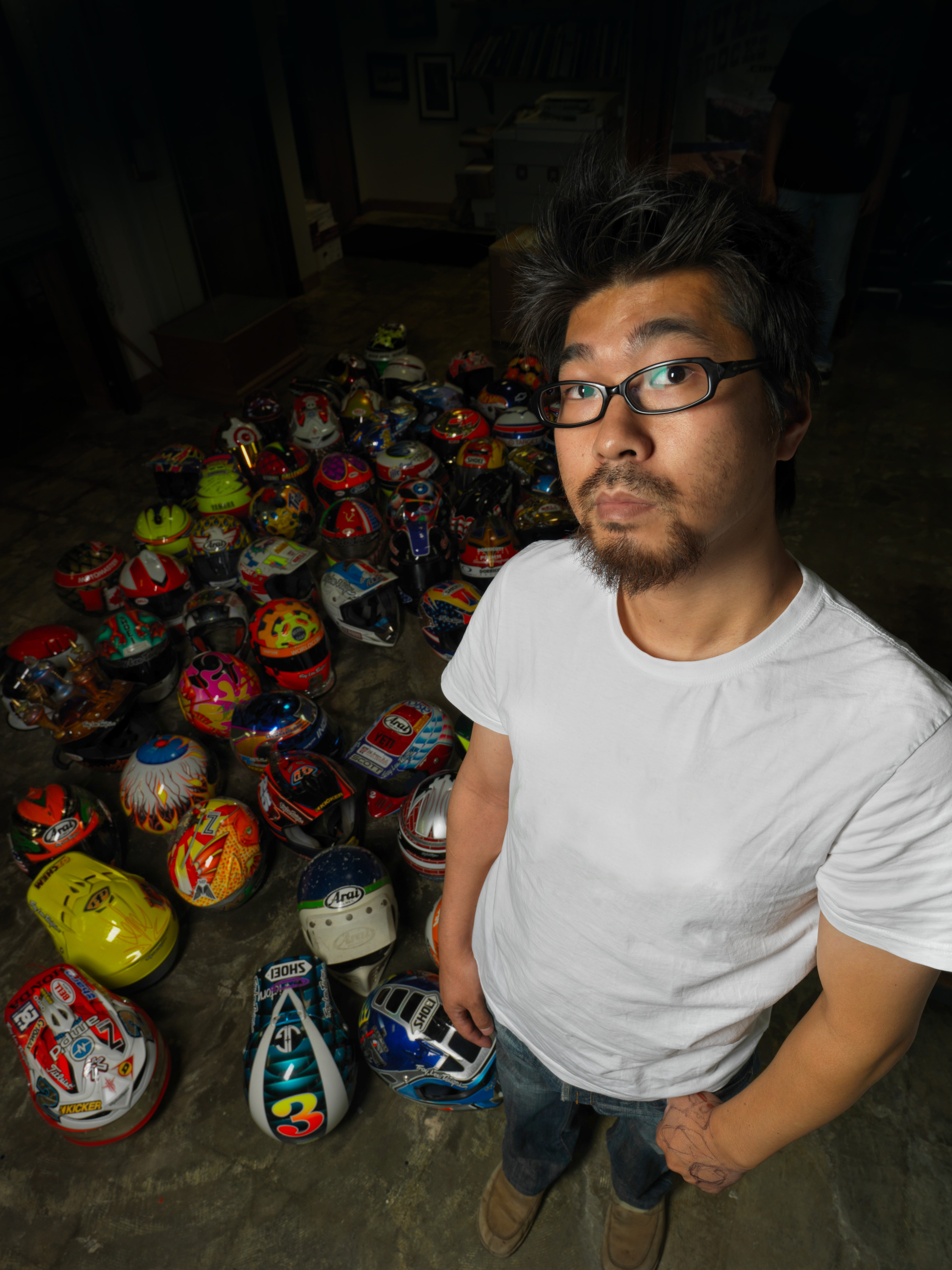 Troy Lee Designs, renowned for their helmet art but also their impact in other products, counted on Ushiroyama’s leanings and vision for thirty years. The Japanese then launched the Groove Machine Inc but TLD still seems to be the principal client. Maki was insightful, and willing to share his methodology as well as outline the compromises of the job.
