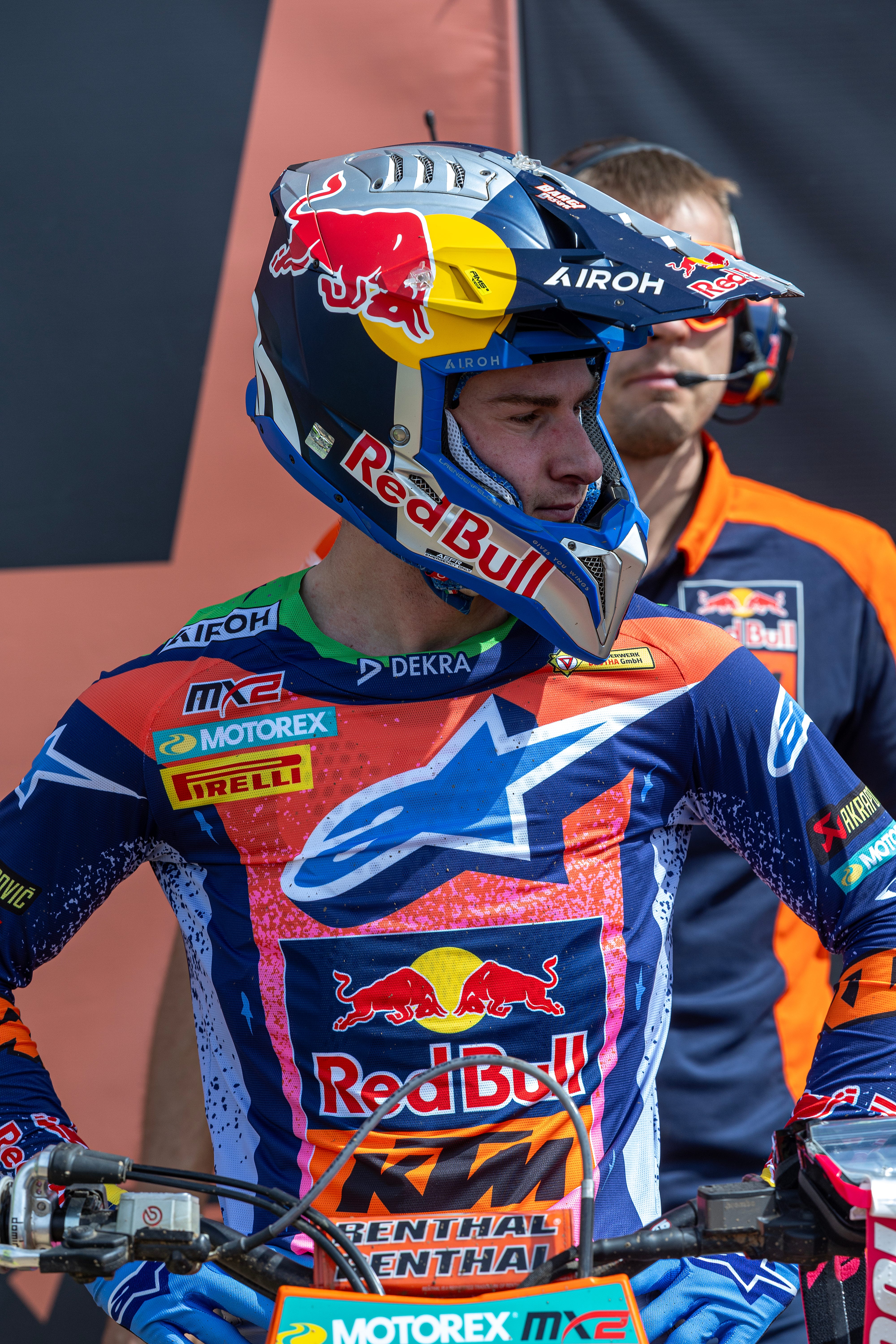 Some gear can be applied to specific partnerships: Fox with HRC (and they are currently in a very high-vis situation with Jeffrey Herlings, Tom Vialle and Ruben Fernandez in MXGP) and Alpinestars with Red Bull KTM and Monster Energy Yamaha (the blue/yellow Techstar Knif line suits the Renaux/Gajser pairing nicely). Fly Racing with KTM as well.